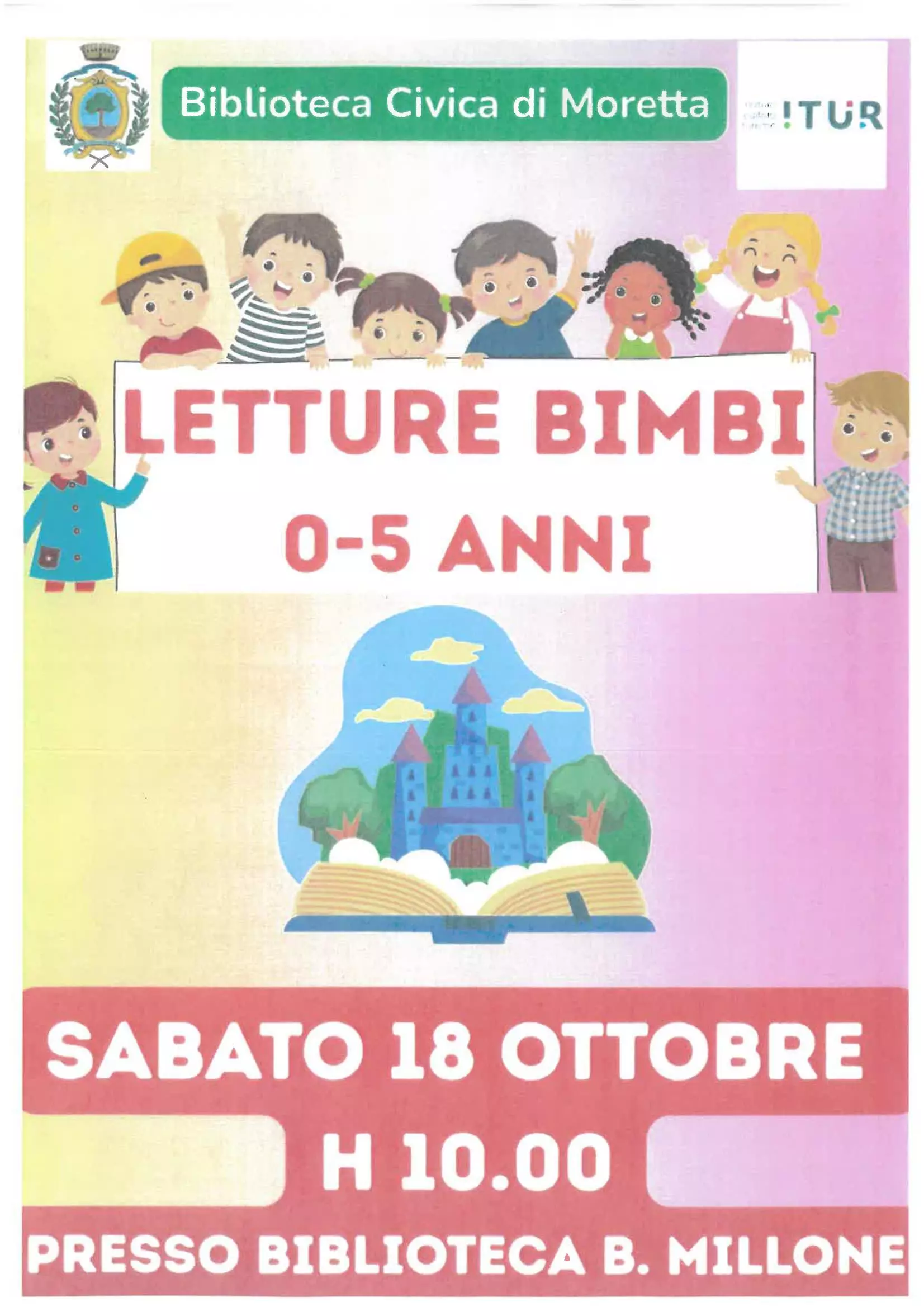 Descrizione Sabato 18 ottobre ore 10:00 presso la Biblioteca Comune "B.Millone" è in programma una lettura per bambini dai 0 ai 5 anni